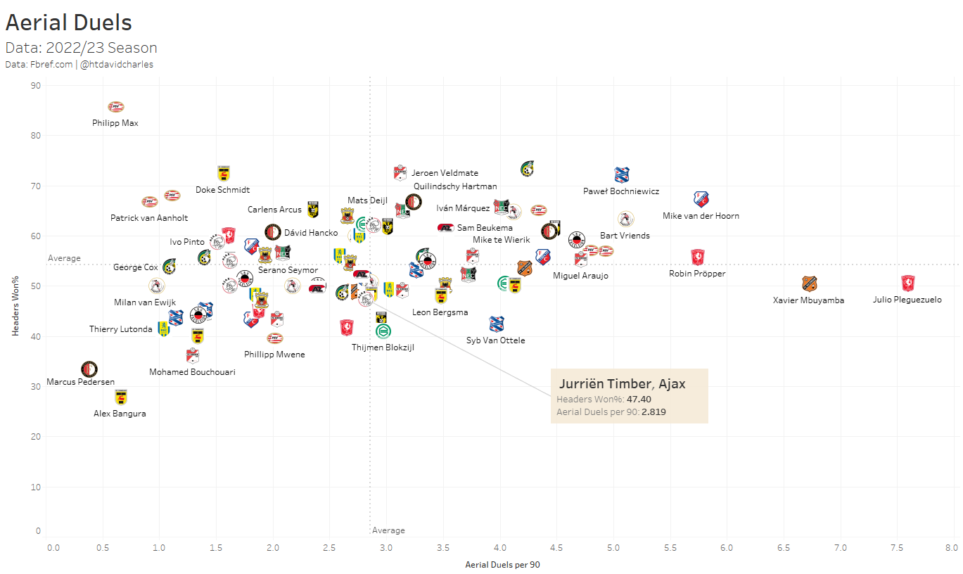 This analysis only looks at defenders who have played a minimum of 1000 minutes in the Eredivise from the 2022/23 season, with data sourced from Fbref.com.