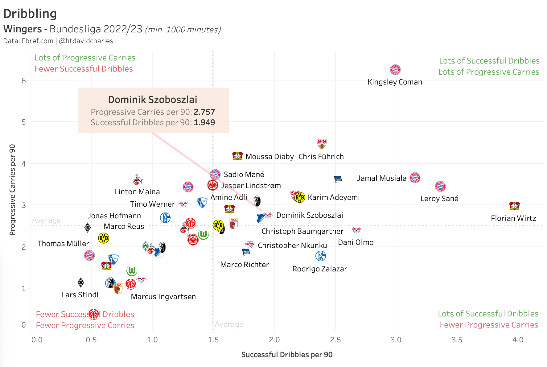 This analysis only looks at attacking midfielders/wingers who have played a minimum of 1000 minutes in the German Bundesliga from the 2022/23 season, with data sourced from Fbref.com.