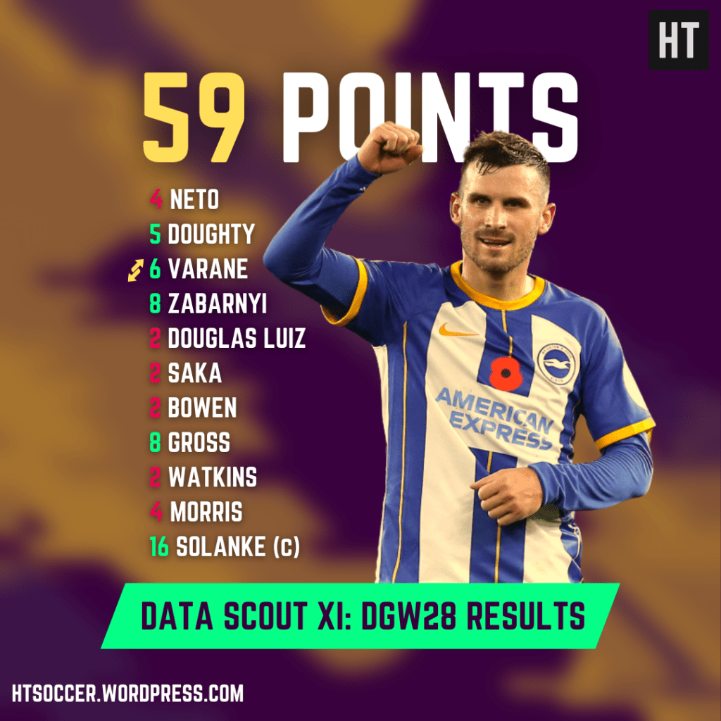 MID: For about the third time this season, the midfield failed to provide anything close to their normal standard of points return. Gross was the only midfielder of four to return over two points. Saka, Bowen, and Douglas Luiz all failed to score or assist in their matches.