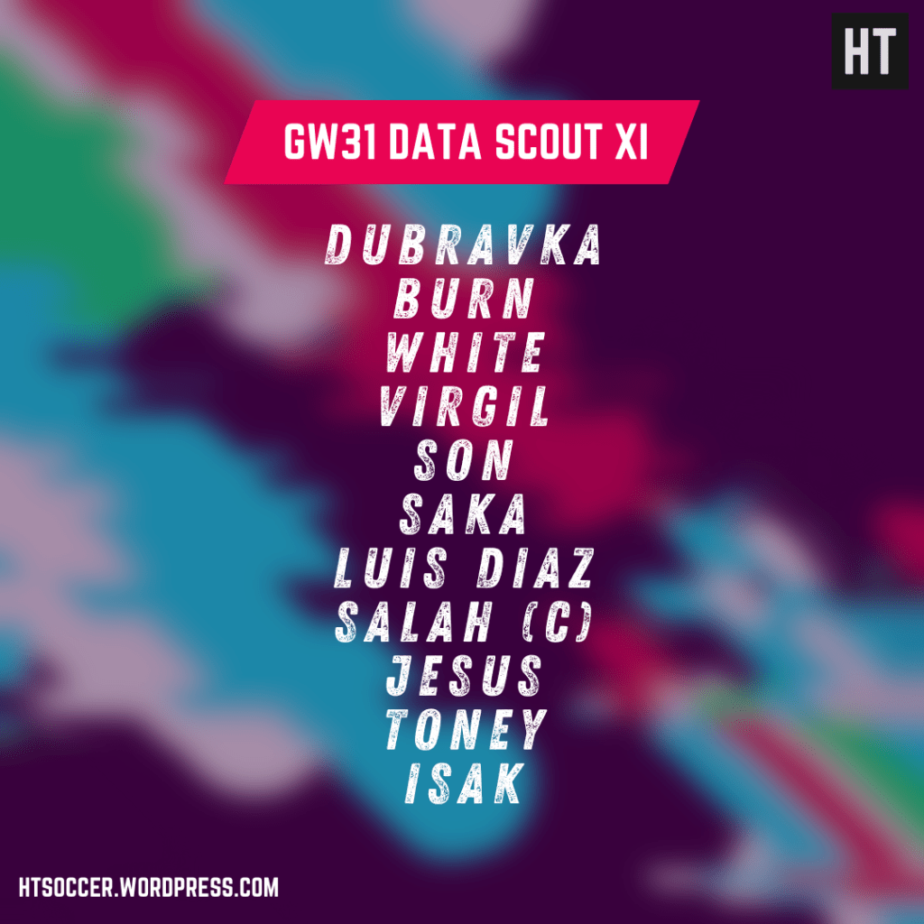GW31 arrives just two days after the final fixture of GW30, here’s a quick data scout XI pick.
