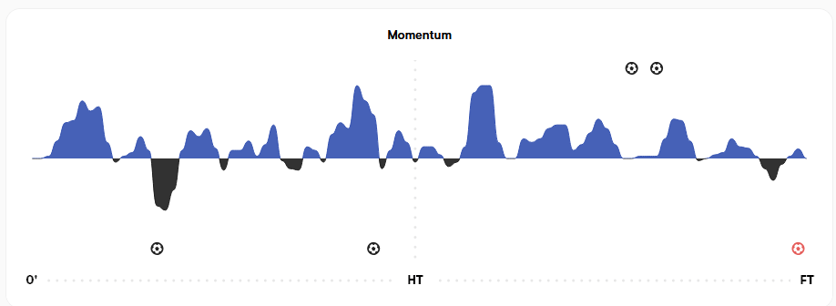 Santos should consider themselves fortunate to win against Fortaleza. The hosts were in complete control of that match except the scoreline. Santos found themselves 2-0 up at half time but two penalties in quick succession brought the hosts level after 70 minutes, only for them to concede a 92nd minute OG to give the win to Santos. The match ended 2-3 to Santos, however on xG it was 2.9-0.80 (although 1.58 of Fortaleza’s was accounted for via penalties… 1.32 non pen xG score). Despite that, after Santos went 2-0 to 2-2 the bet stayed safe.. they only needed a draw for the bet to win! Shoutout to Pikachu for getting man of the match too.