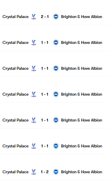 This should be a really good game to watch, Palace have slightly unravelled recently but not at home. While Brighton have been getting decent results against the top sides. Also, amazed to see the last seven results between these two at this ground..